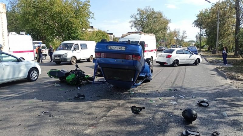 ДТП произошло днём 17 сентября на улице Чайковского. 52-летний водитель вазовской «десятки» ехал со стороны улицы Соловьиной в направлении улицы Станционной. Напротив дома №64, поворачивая налево, мужчина не уступил дорогу 42-летнему мотоциклисту на «Кавасаки Ниндзя 1000».
