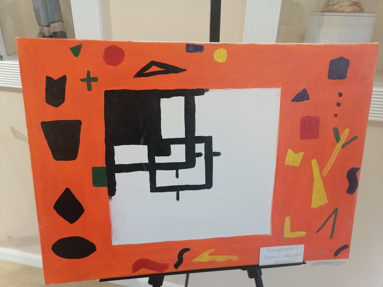 Так, одна из картин, представленных на выставке называлась «Чёрный квадрат – начало», и это далеко не конец квадратам, берущим начало с того самого, черного, над разгадкой тайны которого искусствоведы ломают головы до сих пор, но так и не придут к общему знаменателю.