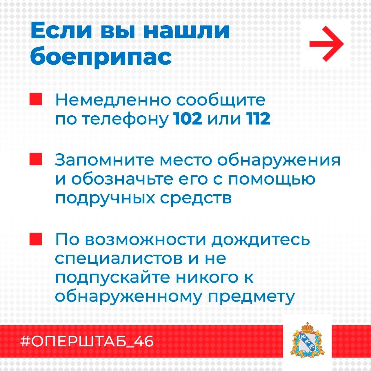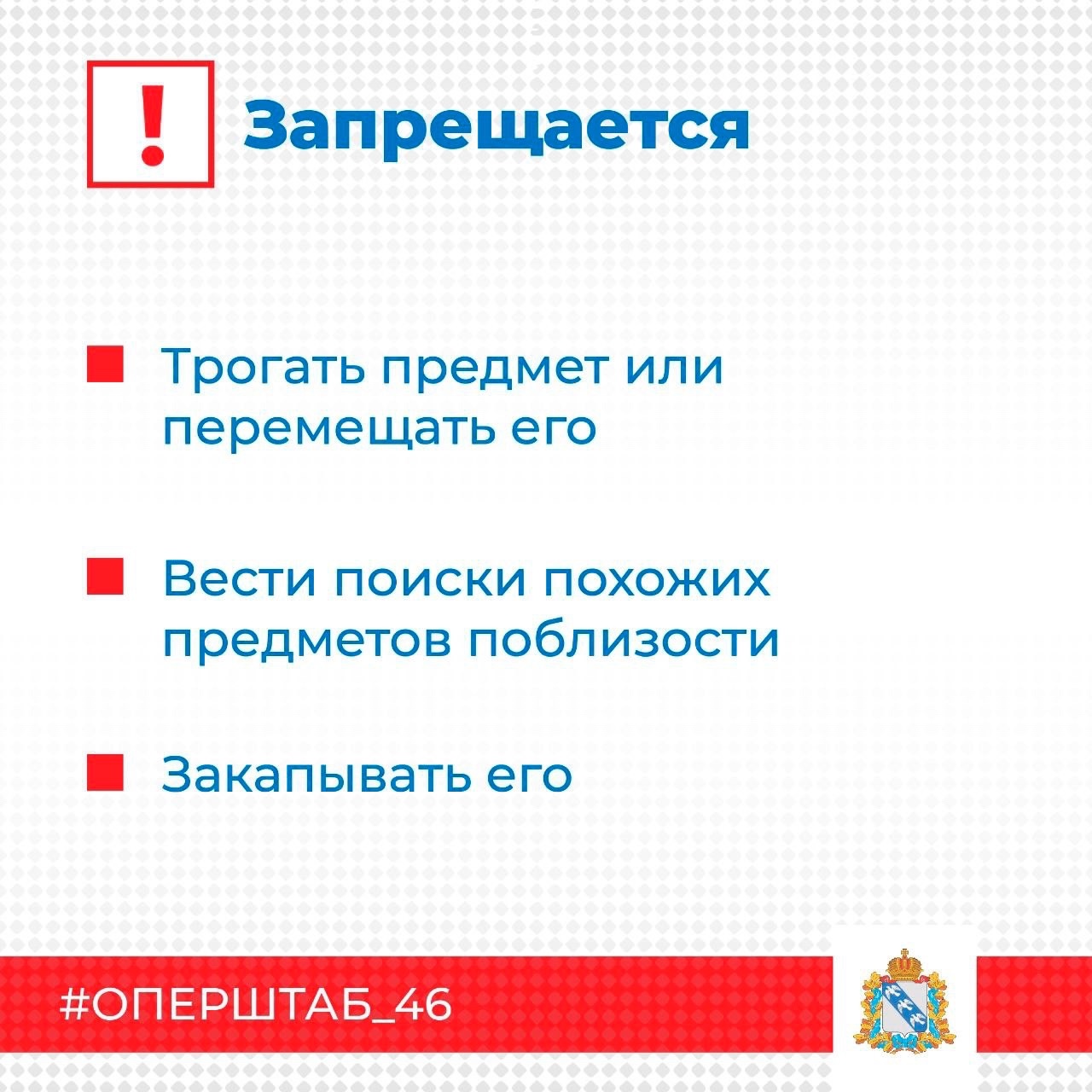 Жителям Курской области рассказали, что необходимо делать при обнаружении боеприпасов или похожих предметов.