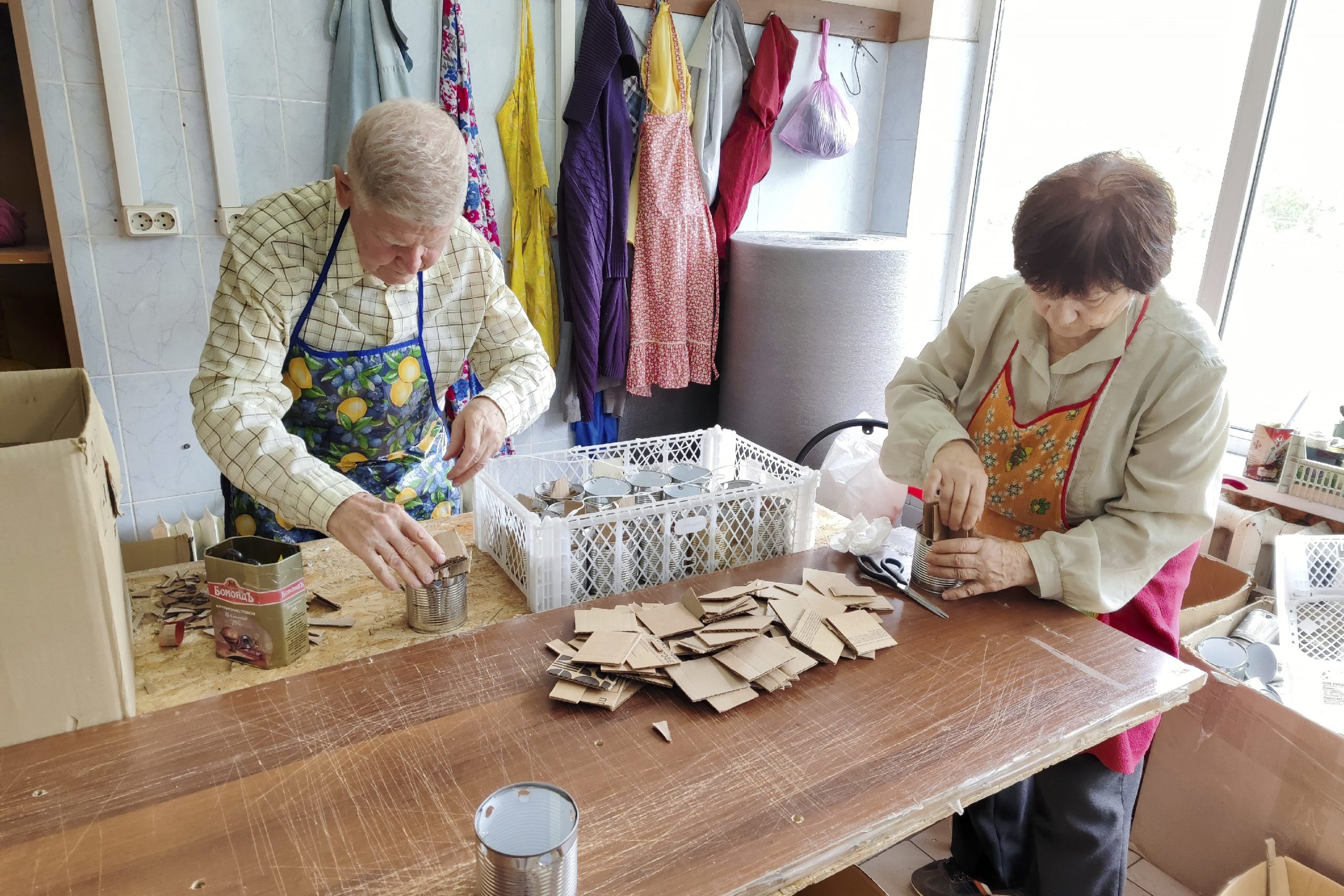 Бывает, что волонтёрам на переплавку приносят огарки церковных свечей, и те идут в безотходное производство. Оставшийся воск расходуют на заполнение жестяных банок, а из фитилей Сергей мастерит своеобразные груши, которые помогут легко разжечь костёр или растопить печь даже в сырую погоду.