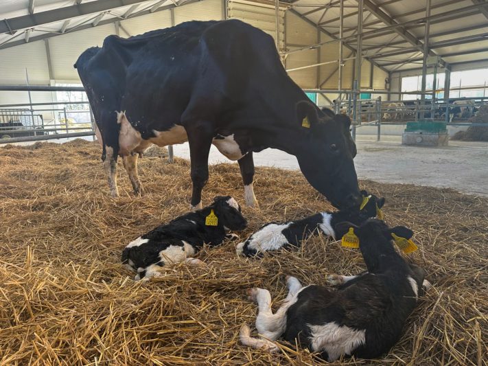 Оператор молочного комплекса «Дмитриевский» успешно принял многоплодный отё. Мама-бурёнка и три её дочки чувствуют себя хорошо.