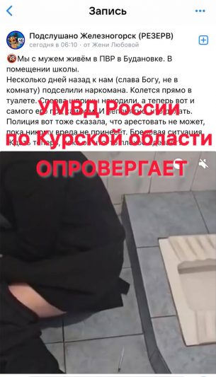 Сотрудники полиции Курской области выявили в соцсетях ролик, на котором показано, что в одном из местных пунктов временного размещения живёт человек, употребляющий наркотики, а правоохранители при этом не принимают никаких мер.
