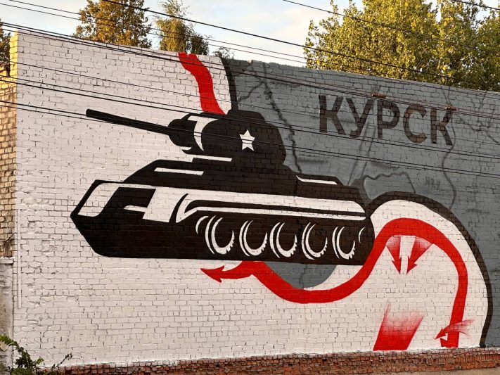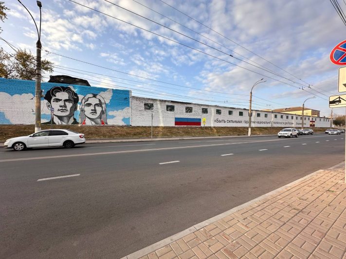 В Курском отделении Союза журналистов России рассказали подробности работы над первым граффити. Изображения с цитатами Владимира Путина, лицами волонтёров и картой битвы на Курской дуге нанесли на улице Красной Армии. Они стали частью проекта «Победа сквозь года: Лица Победы». Первые композиции из этого цикла появились в прошлом году возле железнодорожного вокзала.