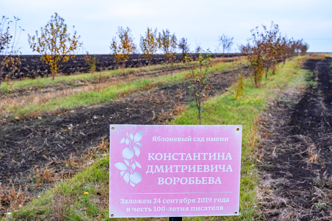 – Наши женщины угощали их куличами, а они дарили им привезённые с собой семена, – рассказывает заведующая, останавливаясь у крайней яблони, за которой выстроилась разрастающаяся яблоневая посадка. – А это – яблоня Романова, она так названа в честь главного научного сотрудника Курского литературного музея. Он с коллегами участвовал в высадке сада. Сажали яблони сотрудники районной администрации.