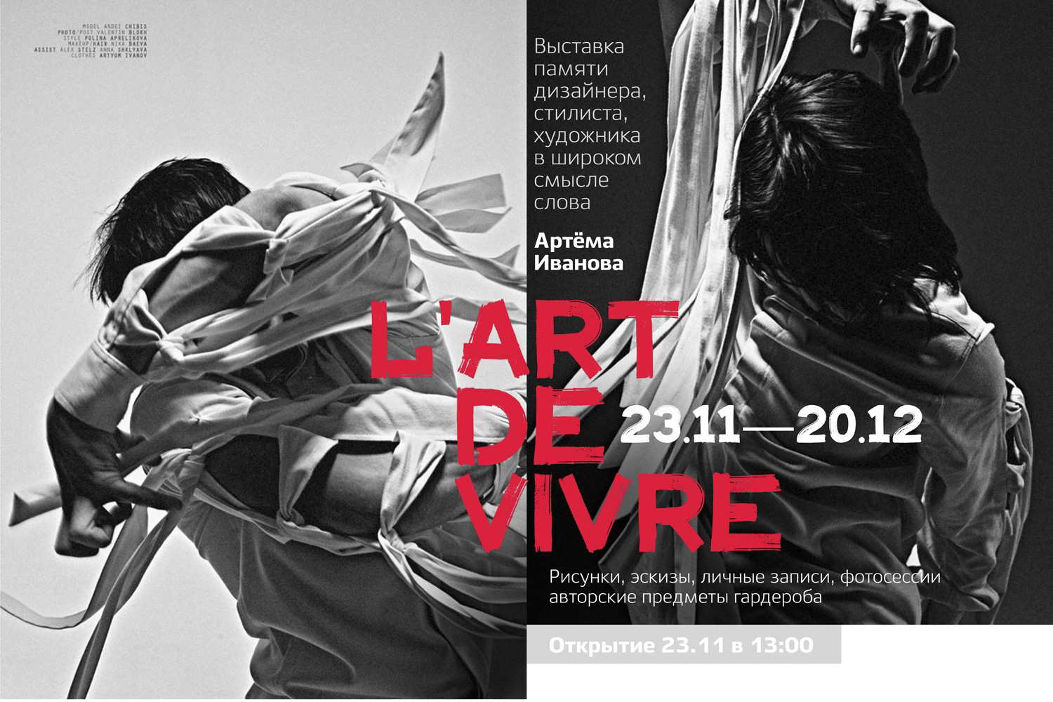 Выставка посвящена памяти дизайнера, стилиста и художника Артёма Иванова. Его школьные и студенческие годы прошли в Курске, парень окончил художественно-графический факультет КГУ. Затем творческий путь и учёба привели его в Москву. Сейчас художнику было бы 30 лет.