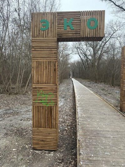 1 октября на Боевке в Курске торжественно открывали экотропу, где любители активного отдыха моги бы заниматься скандинавской ходьбой, бегом и просто наслаждаться прогулками на свежем воздухе. Однако в неизменном виде просуществовала она всего полтора месяца. Неизвестные изрисовали стелу на входе, оставив хаотичные мазки краски и неразборчивые слова.