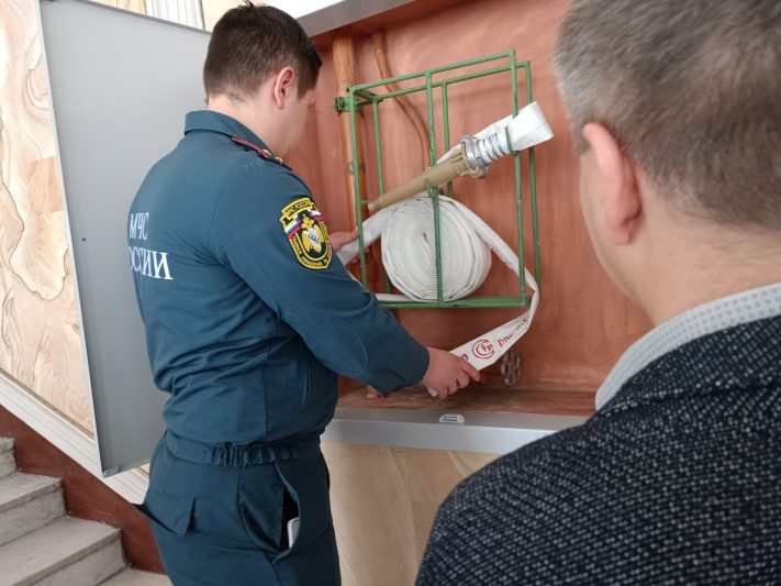 Профилактический визит сотрудника ГУ МЧС России по Курской области Михаила Ишкова начался с проверки состояния приемно-контрольного прибора. В случае срабатывания пожарного извещателя, индикация прибора с зеленого света поменяется на красный и обозначит, в каком помещении сработал датчик. Михаил Ишков проверил эвакуационные выходы, состояние первичных средств тушения и провел инструктаж с директором и персоналом. Сотрудники знают, как вести себя в нестандартной ситуации. Кресла в зрительном зале оборудованы пружинами и откидываются автоматически, это позволяет быстро встать и покинуть зал. К эвакуационным выходам зрителей проведут работники театра.