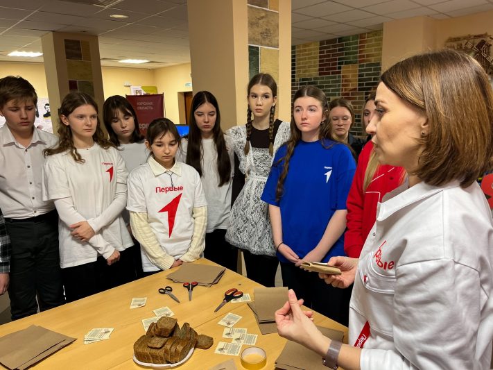 Также «Первые» подготовили акцию «Блокадный хлеб». Ее ключевой символ — хлеб весом в 125 грамм, именно такая ежедневная минимальная норма была установлена во время блокады Ленинграда. Ребята роздали его жителям Курска, чтобы напомнить о тех событиях, которые проходили в Ленинграде.