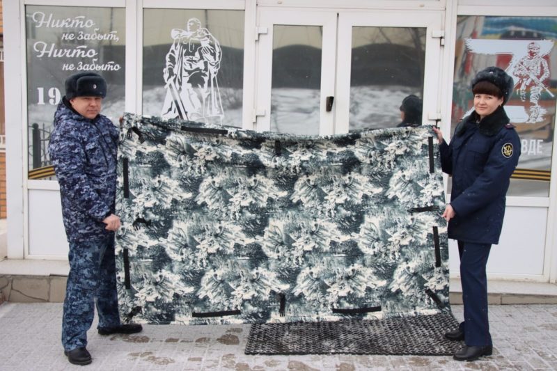 — Уникальность разработки в том, что за счёт четырёх прочных ручек по краям несколько одеял можно соединить специальными защёлками — трезубцами, получится большое полотно для маскировки крупной техники. А вот благодаря внутреннему наполнителю под таким одеялом бойцы не видны тепловизору, — пояснил заместитель начальника ИК-2 Сергей Егупов.