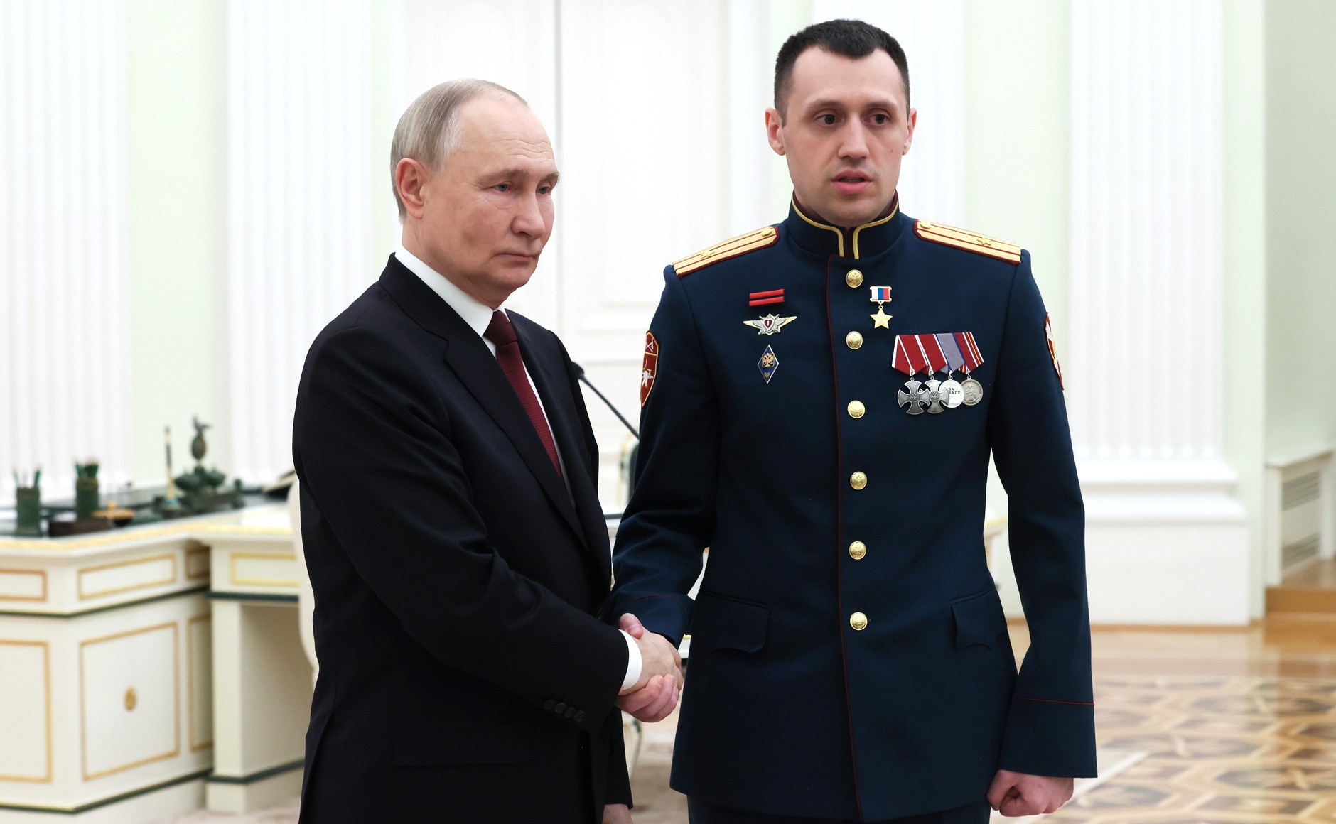 Сегодня Владимир Путин наградил бойцов Росгвардии, остановивших прорыв ВСУ в Курской области 5 января. Церемония прошла в Кремле в рамках торжественного приёма, посвящённого Дню защитника Отечества. Президент вручил майорам-росгвардейцам Марату Тибилову и Андрею Филоненко высшую награду – «Золотую Звезду» Героя России.