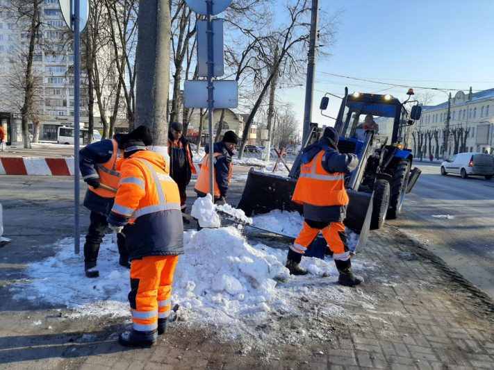 На уборку улиц вышли 74 человека и 59 единиц техники. Специалисты не только расчищают тротуары и дороги, но и обеспечивают безопасность.