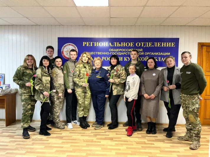 Команда Молодежки Народного Фронта посетила региональное отделение общероссийской общественно-государственной организации ДОСААФ России Курской области и поздравила девушек из народных полков с наступающим Международным женским днем.