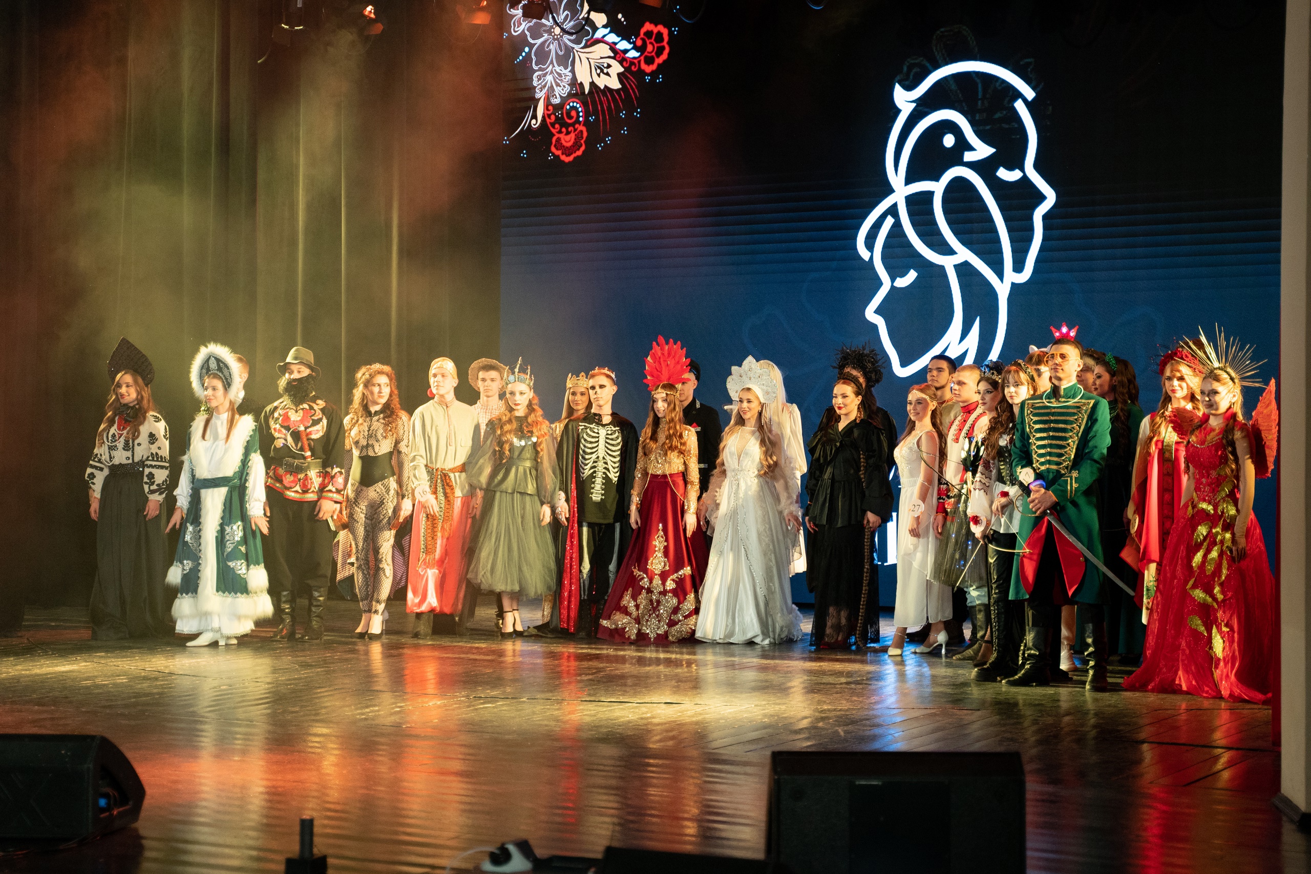 Всё самое интересное проходило во время финала. Темой первого дефиле стал «Неофолк»: студенты в своих образах переосмысляли героев из русского народного фольклора. Кто-то предстал перед жюри в образе щуки-предпринимателя из сказки «По щучьему велению», а кто-то был чёрным лебедем со светодиодной подсветкой. А вот студентка Курского колледжа коммерции, технологий и сервиса Кристина Леснова решила примерить на себя образ Жар-птицы.