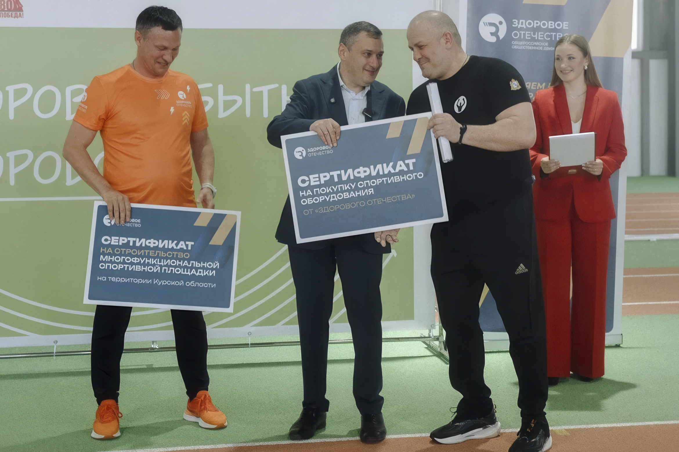 Олег Саитов приехал не с пустыми руками. Он вручил два сертификата на покупку оборудования для спортшколы Суджанского района, пострадавшей от обстрелов ВСУ, а также сертификат на строительство многофункциональной спортивной площадки в Курске.