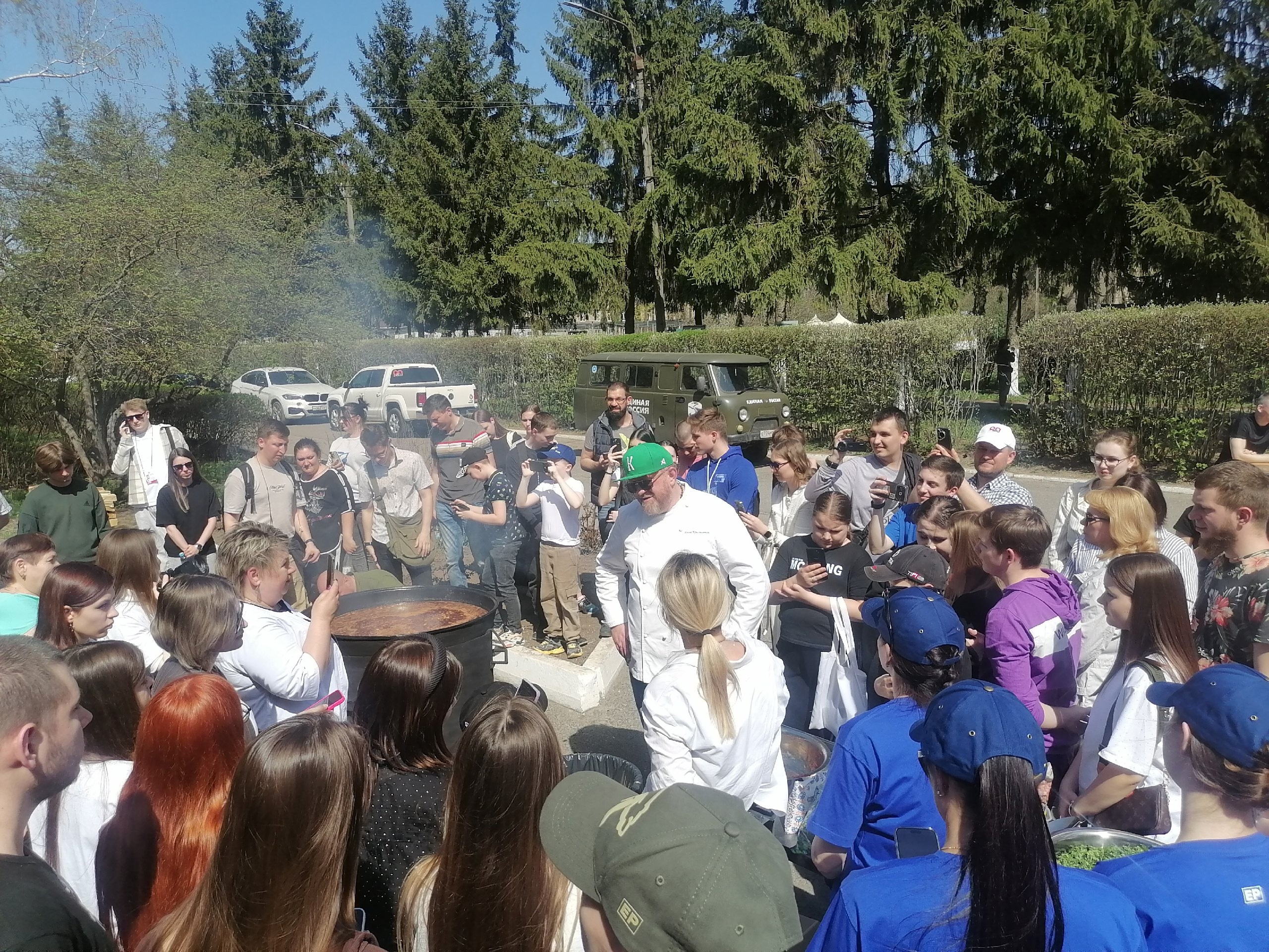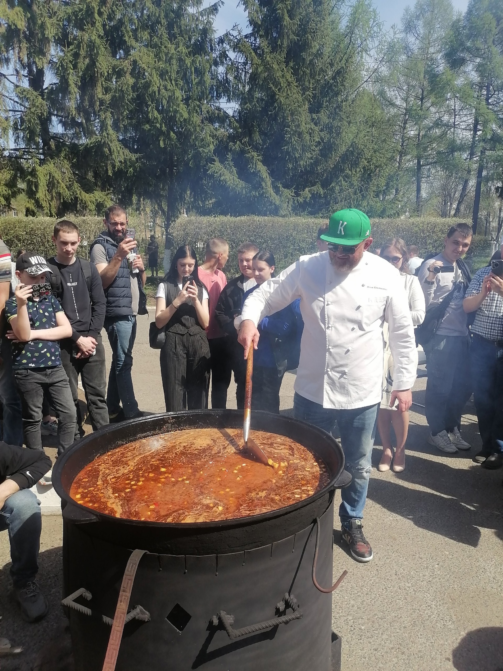 Известный телеведущий сегодня приготовил венгерский гуляш в 200-литровом чане для проживающих в ПВР.