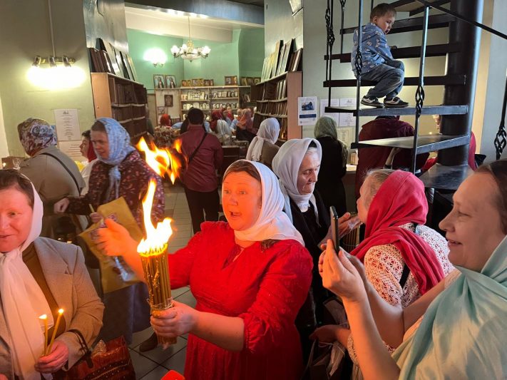 В Знаменский кафедральный собор Курска доставлен Благодатный Огонь, сошедший в храме Воскресения Христова (Гроба Господня) в Иерусалиме в Великую субботу.
