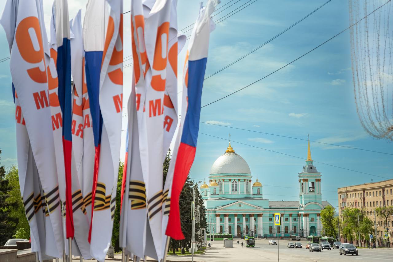 Парки и главные улицы Курска ко Дню Победы украсили праздничными декорациями. Композиции из флагов устанавливают на мостах и кольцевых развязках. В парках и скверах композиции из флагов дополнили световые фигуры в виде звёзд. На Красной площади разместили «Курск – город воинской славы» и «С Днем Победы». На центральных улицах развесили и праздничные растяжки с надписями «Курск — город воинской славы!» и «Курск — за Победу!».