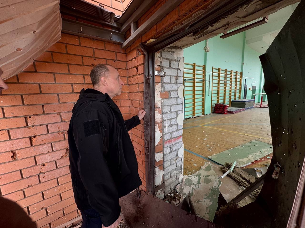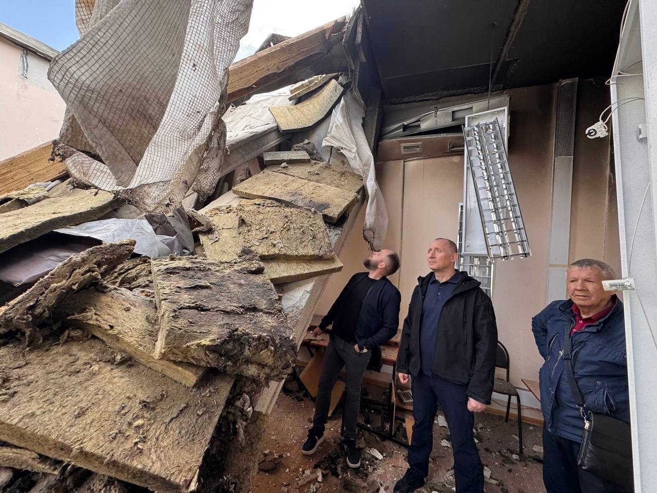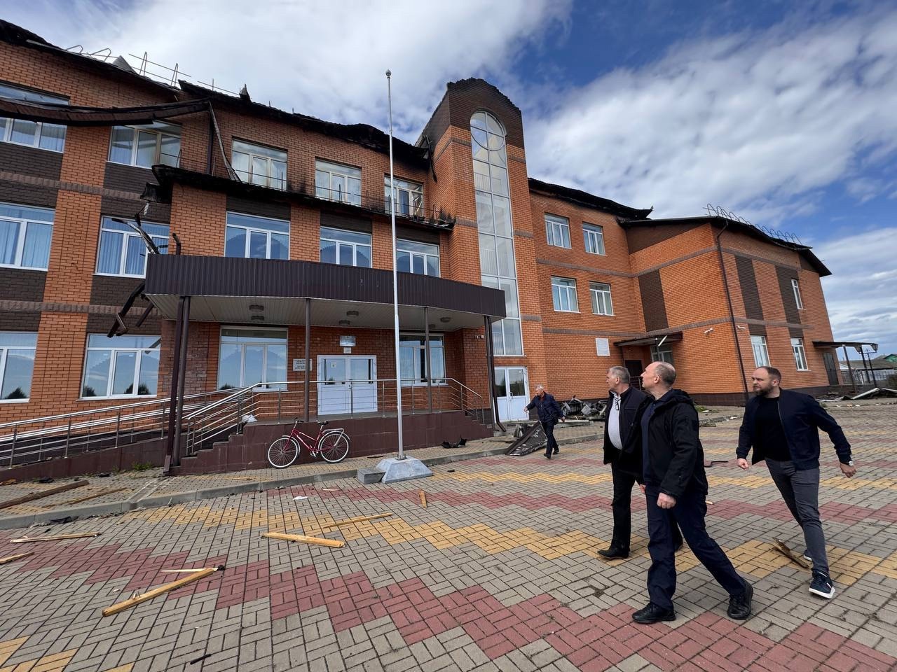 В селе Песчаном, которое 27 апреля атаковали украинские беспилотники, он осмотрел пострадавшую школу, куда пришелся удар. В здании разрушилась часть перекрытий на третьем этаже, а в результате пожара полностью сгорел каркас кровли. По предварительным данным, школа подлежит восстановлению. По мнению Владимира Базарова, реконструкцией нужно заняться срочно. Уже в понедельник специалисты выедут на объект для дефектовки и составят смету. Чтобы мебель не пострадала от осадков, ее разместят в спортзале.