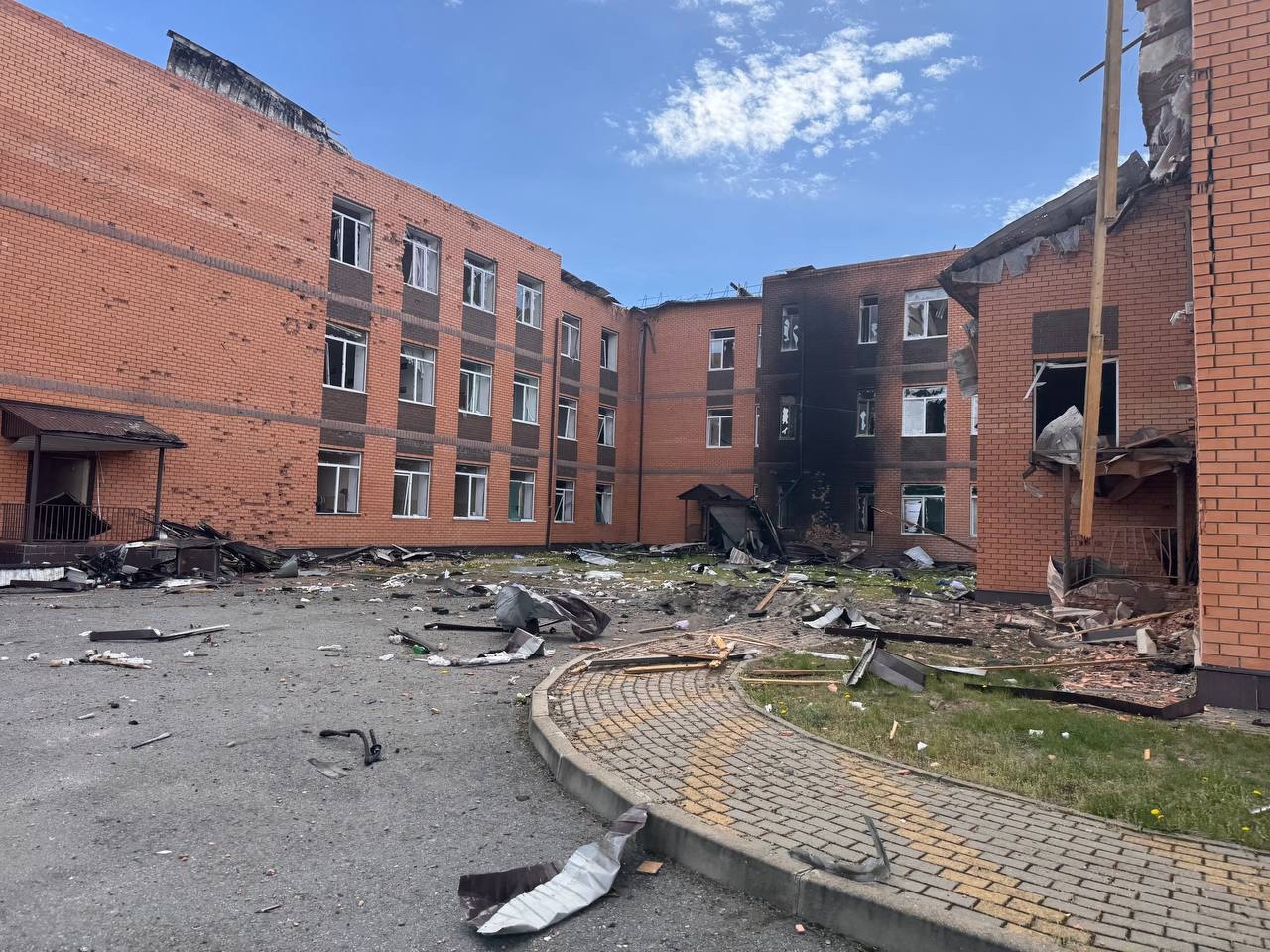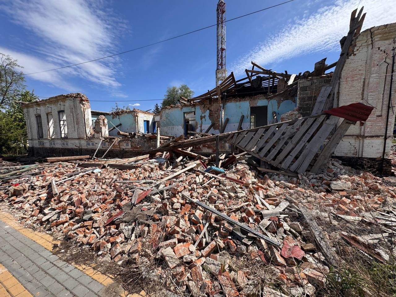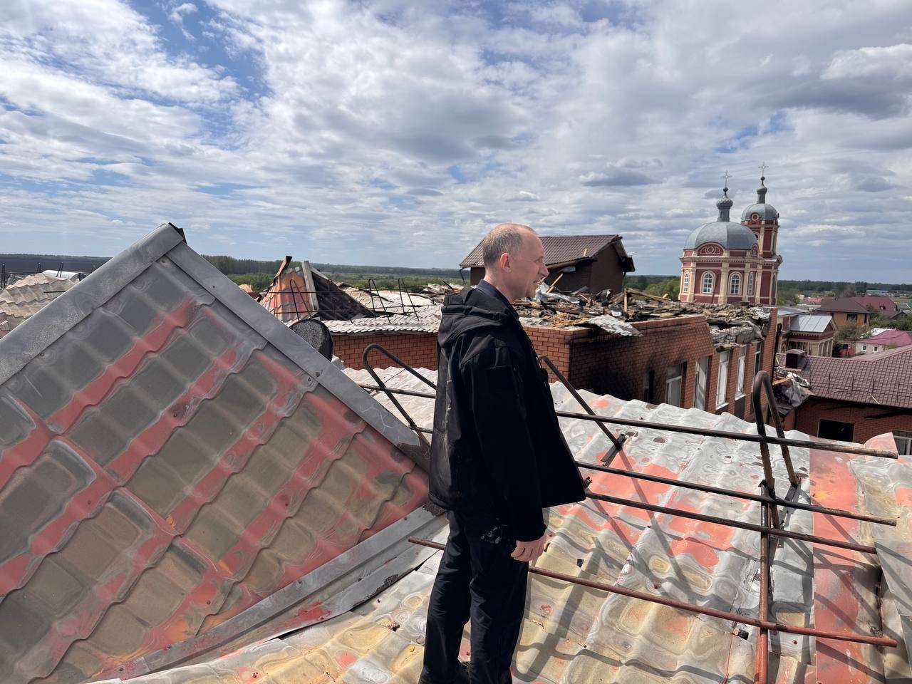 В селе Песчаном, которое 27 апреля атаковали украинские беспилотники, он осмотрел пострадавшую школу, куда пришелся удар. В здании разрушилась часть перекрытий на третьем этаже, а в результате пожара полностью сгорел каркас кровли. По предварительным данным, школа подлежит восстановлению. По мнению Владимира Базарова, реконструкцией нужно заняться срочно. Уже в понедельник специалисты выедут на объект для дефектовки и составят смету. Чтобы мебель не пострадала от осадков, ее разместят в спортзале.