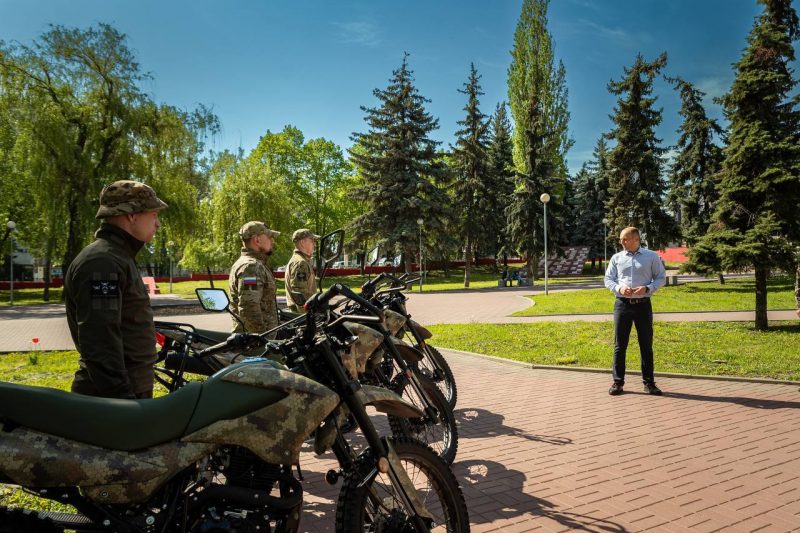 Наши бойцы получили три спортивных камуфлированных мотоцикла, одежду, продовольственные наборы и другие необходимые вещи.