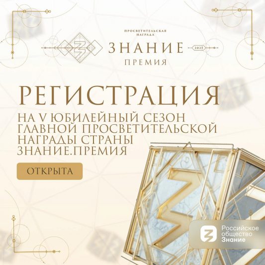 «Знание.Премия» — это главная просветительская награда страны, учреждённая Российским обществом «Знание» в 2021 году. Она призвана признать достижения педагогов, лекторов, авторов, блогеров, популяризаторов науки и других деятелей просвещения, а также отметить просветительские проекты и компании из различных сфер.