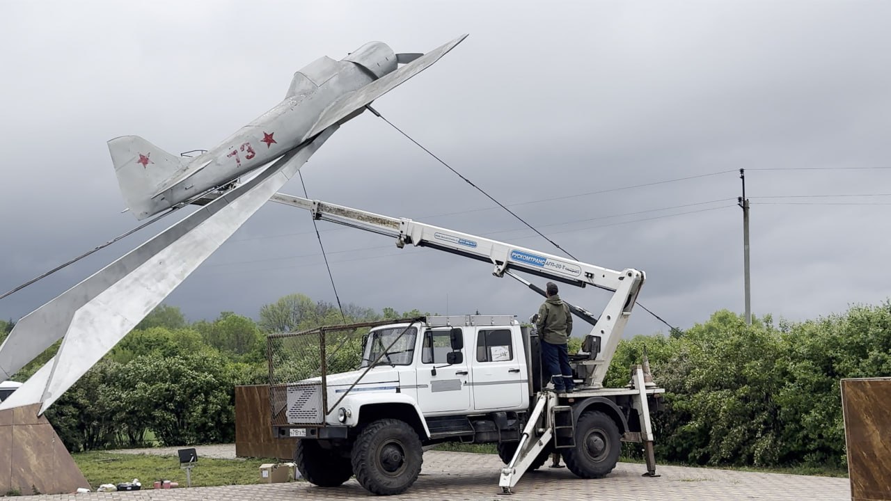 Команда Курской «Молодёжки ОНФ» совместно с центром «Патриот» помогает реставрировать памятник советскому лётчику Александру Горовцу в Беловском районе. Самолёт очистили от ржавчины, подлатали и покрасили.