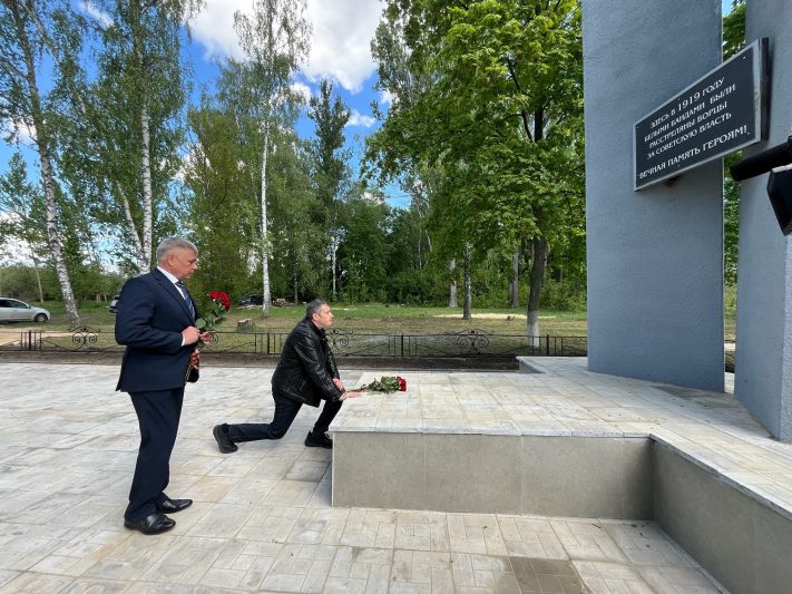 Также врио губернатора осмотрел братскую могилу юных подпольщиков, казненных немецко-фашистскими захватчиками. Михаил Звягинцев, Василий Холявкин и Василий Долженков в годы войны создали подпольную группу «Спартак», поддерживали связь с партизанскими отрядами, снабжали их сведениями, расклеивали листовки и сводки Совинфорюро.