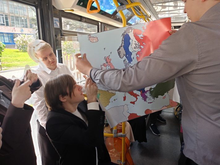 8 мая в Курске состоялась патриотическая акция «Маршрут Победы», посвященная 80-летию победы в Великой Отечественной войне. В салоне троллейбуса, следующего по маршруту «Знаменский собор — Московская площадь», был устроен небольшой концерт.