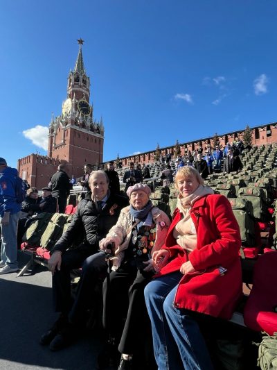 — Здесь чувствуешь мощь и силу нашей страны. Накануне побывали в музее Победы. Удалось пообщаться с дорогими ветеранами. Участнице обороны Москвы Нине Ивановне Миличихиной 100 лет! Фронтовики, несмотря на возраст, вставали при исполнении гимна. Я встретила много душевных, хороших людей. Тепло поговорили с Героем Советского Союза отцом Киприаном и военкором Александром Сладковым, – рассказала Екатерина.
