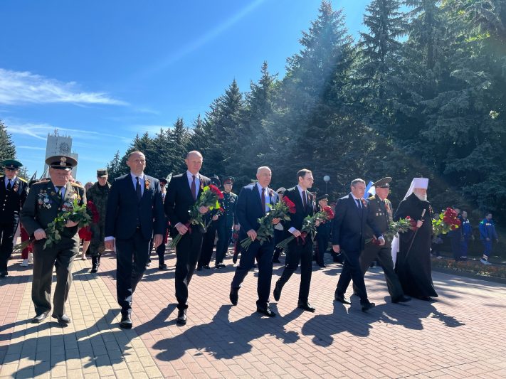 Тем не менее, на мемориале «Памяти павших в Великой Отечественной войне 1941 – 1945 годов» сегодня собрались сотни неравнодушных курян, чтобы возложить цветы к Вечному огню. Почтили память советских воинов и представители власти, в их числе — врио губернатора Курской области Александр Хинштейн.