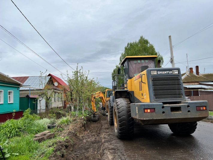 Подрядчик уже снял здесь старое асфальтобетонное покрытие. Сейчас дорожники устанавливают бордюрные камни, после чего уложат два слоя нового асфальтобетона. Также планируется отремонтировать съезды и обустроить тротуары.