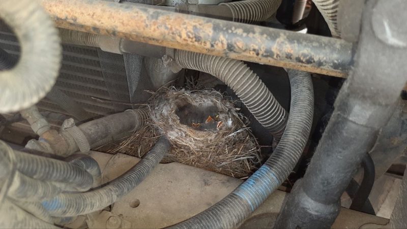 Во время поездки большегруз сломался. Тогда водитель и обнаружил гнездо, открыв решетку в кабине. Птенцы были ещё маленькие, но живые. Чтобы не беспокоить пернатых, ремонт машины отложили, а спустя две недели окрепшие и подросшие трясогузки покинули необычный дом.