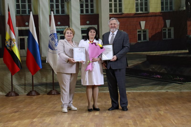 Сотрудникам медучреждений региона вручены почетные грамоты и благодарности. Награды за добросовестный труд получили сотрудники Курской ОМКБ — старшая медицинская сестра нейрохирургического отделения Наталья Щербинина, рентгенолаборант отделения рентгено-компьютерной томографии Татьяна Тонких, медицинская сестра процедурной нефрологического отделения Татьяна Муратова.