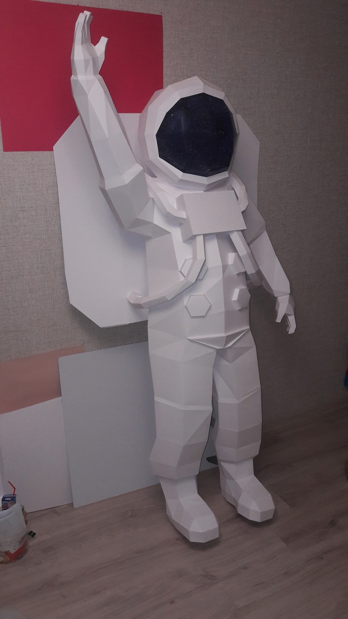 Благодаря своему небольшому весу такие фигуры легко крепятся к стене и другим поверхностям на английские булавки: и украшение, и необычный предмет интерьера. Но бывало и такое, что скульптура получала вторую жизнь после первой демонстрации на каком-то мероприятии. Так, несколько лет назад случилось с двухметровым космонавтом. Изначально Евстратов создавал его для фотозоны мероприятия, которое проводили в Курске представители ивент-индустрии – свадебные фотографы, дизайнеры, организаторы праздников.