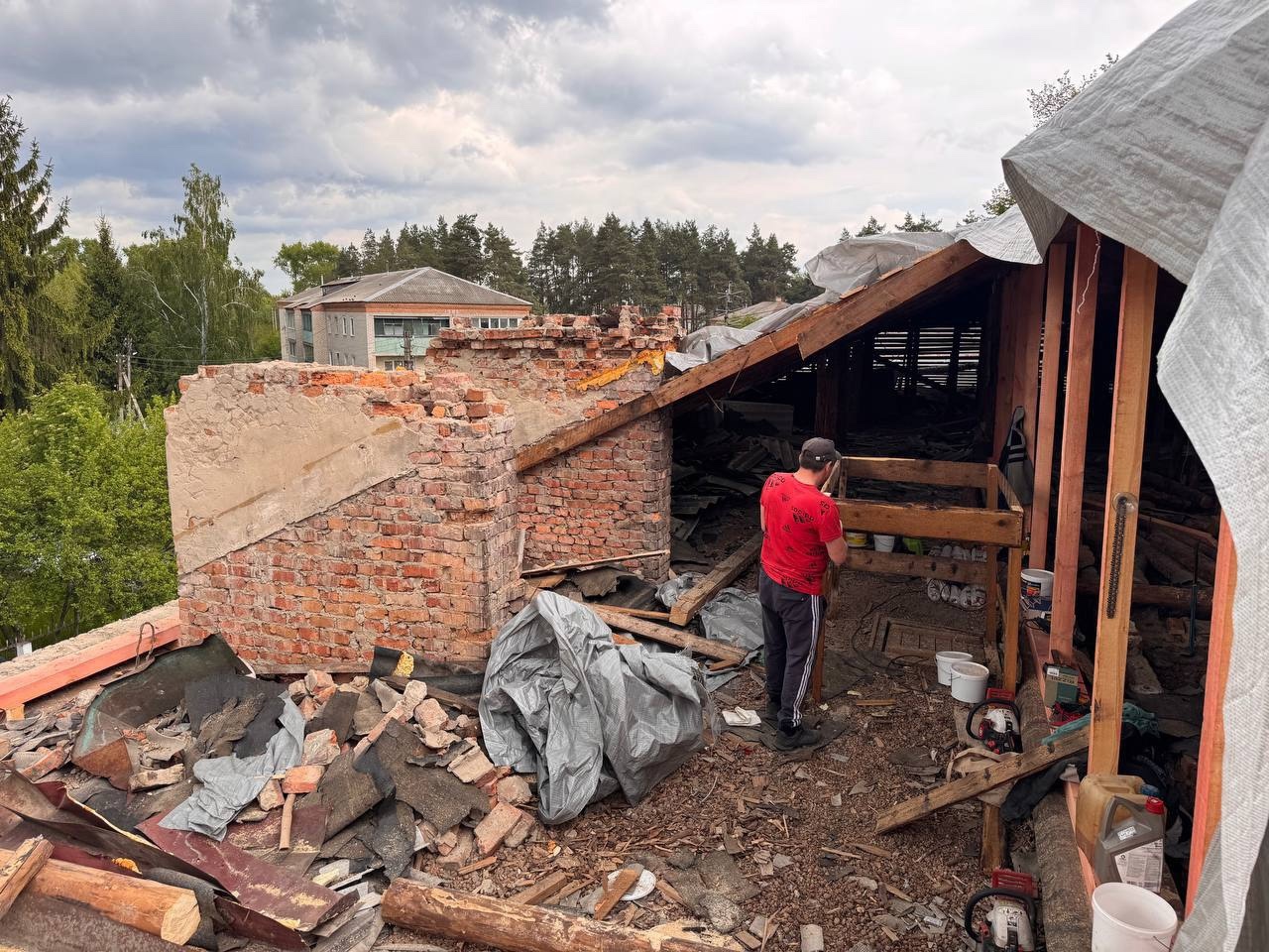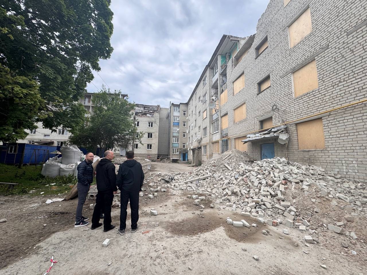 Во Льгове на улице Карла Либкнехта продолжают ремонт многоквартирного дома после прилета. Владимир Базаров отметил хороший темп работ.