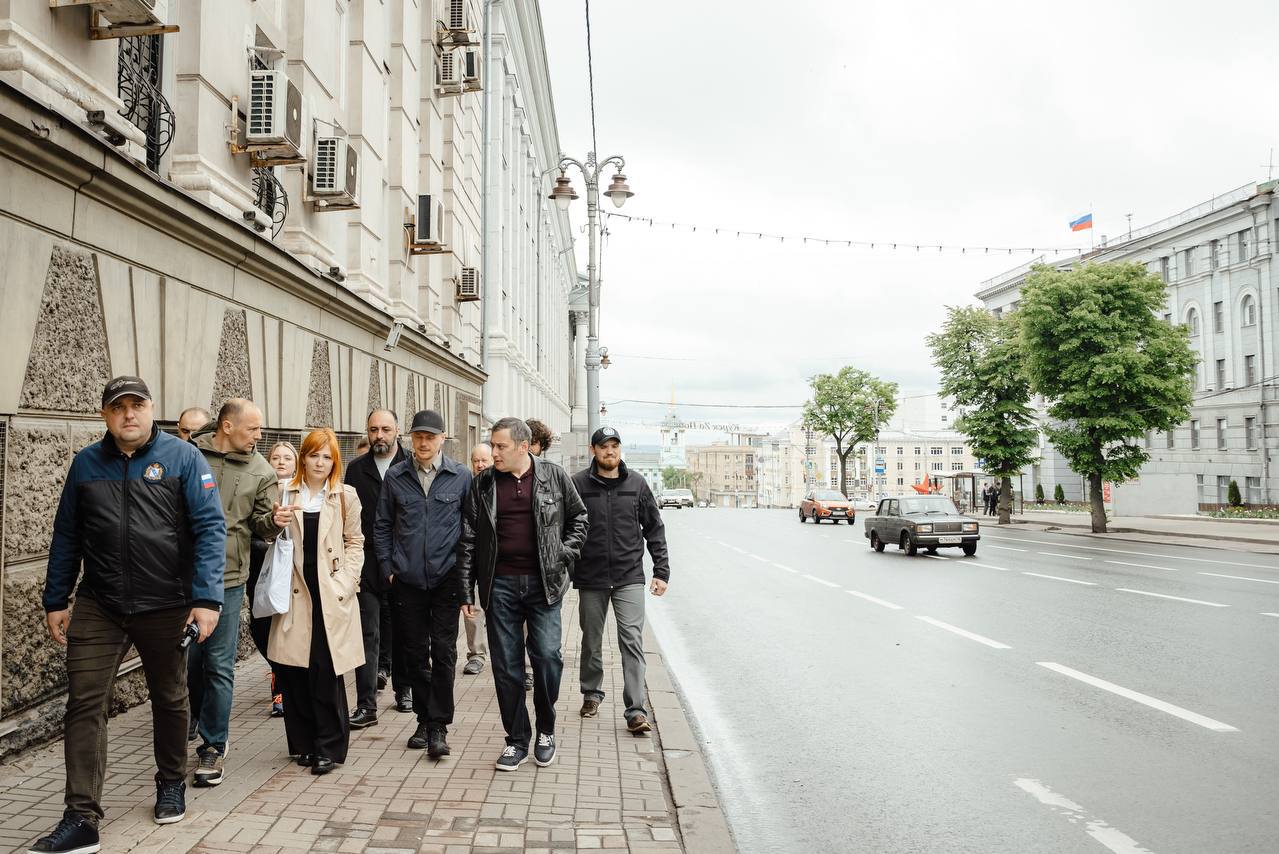 Врио губернатора Курской области Александр Хинштейн вместе с краеведами, коллегами из правительства региона и администрации города осмотрели центральные улицы областного центра. Одно из мест осмотра — улица Ленина.