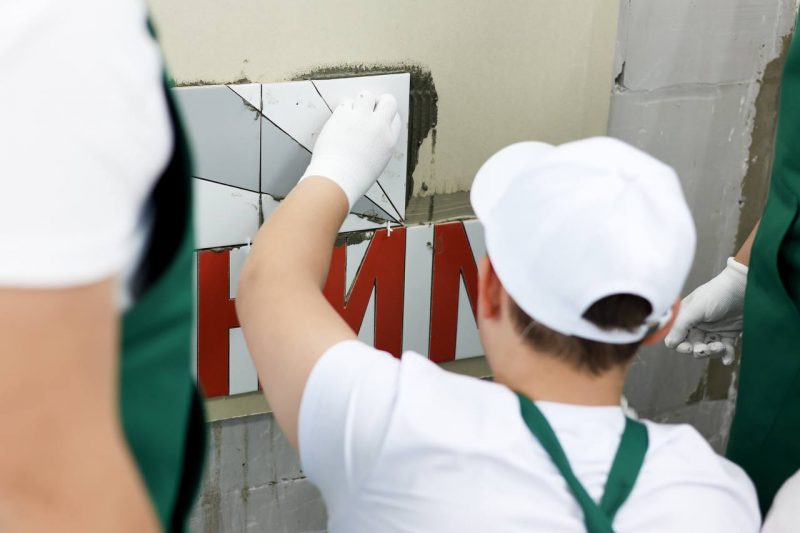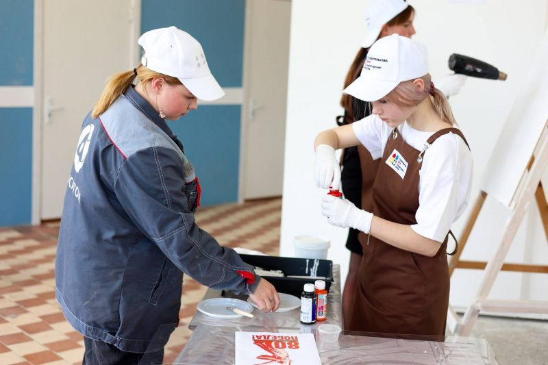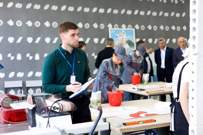 Состязание проходило в двух компетенциях: «Облицовка плиткой» и «Малярное дело». Участники в первой категории создали панно, посвященное 80-летию Великой Победы, а во второй – работу на тему «2025 – Год защитника Отечества».