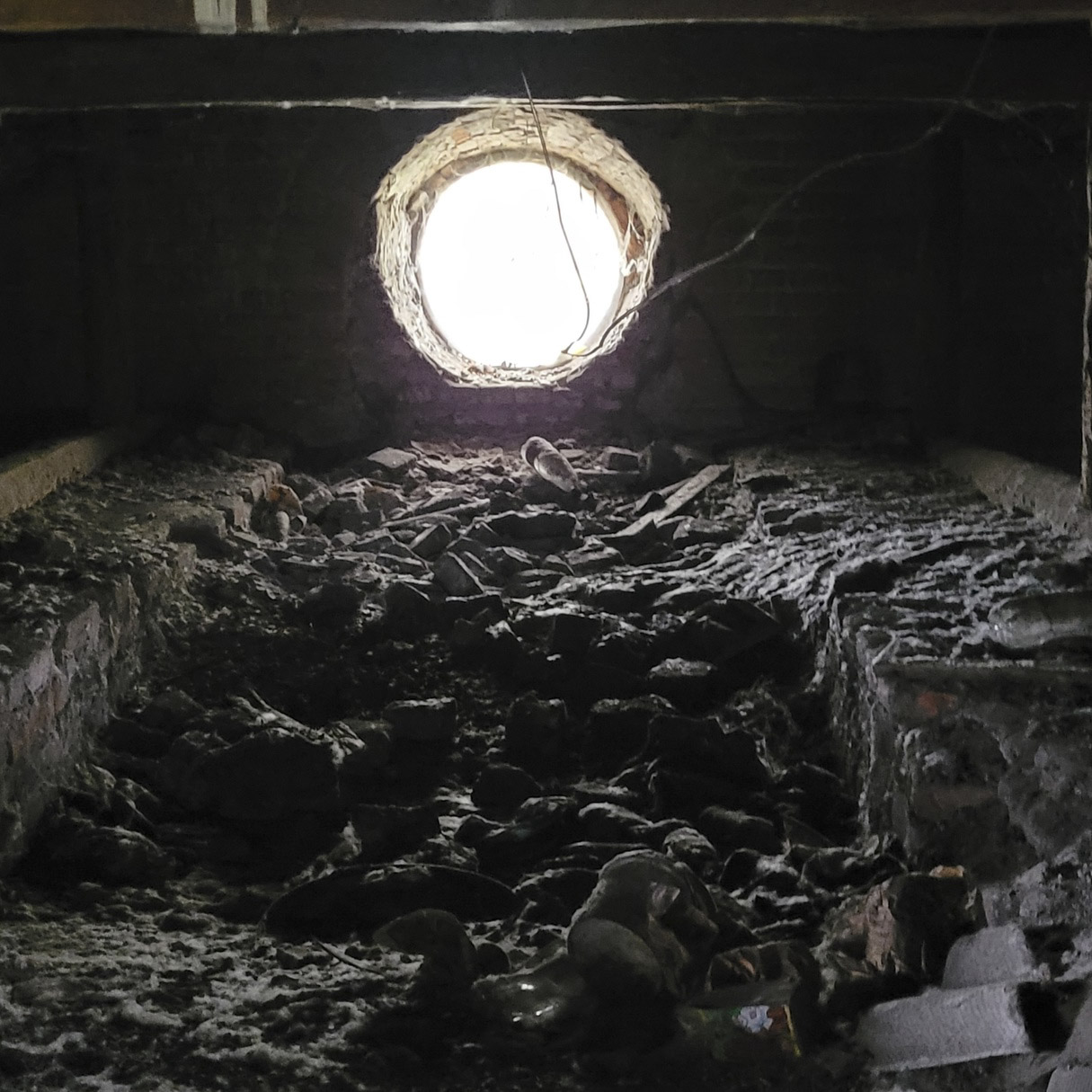 На Ендовищенской внимание собеседницы привлекает проём на уровне подвала – так называемый залаз. При виде его в глазах Екатерины появляется блеск. Она мигом исчезает в нём и через несколько минут появляется, довольная, с серией сделанных внутри снимков.