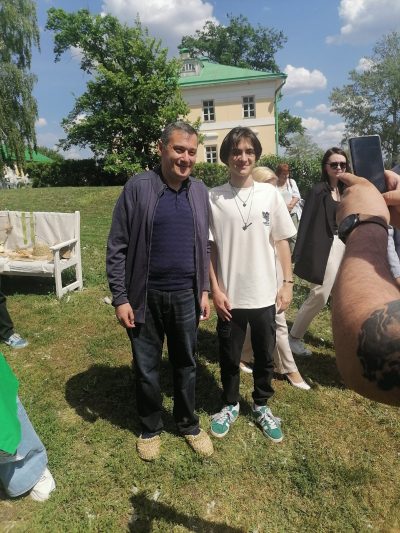 Обещанные лапти, сплетенные по размеру, мастерица подарила Хинштейну на празднике «ФетКнигоФест».