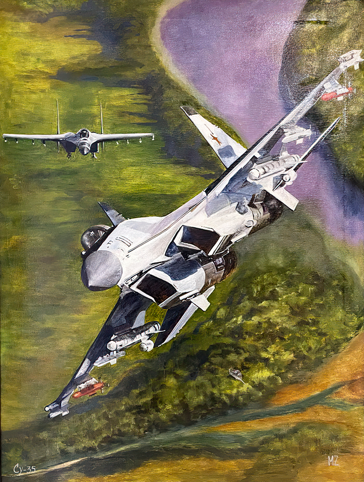Но! Здесь я впервые вижу, чтобы военная техника стала объектом, фокусом живописных работ. Не старинные корабли – парусники, а современные – «Адмирал Горшков», «Адмирал Кузнецов», или же самолёты МиГ-31, Ту-95. И вот в этом качестве – как объект живописи – такое изображение приобретает новое измерение, становится символом, поскольку всё настоящее искусство символично.