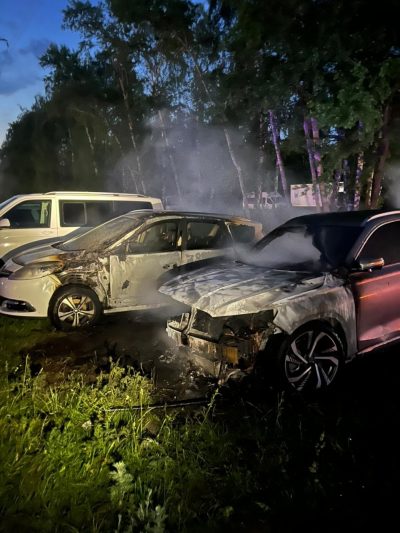 По прибытии спасатели обнаружили, что горит автомобиль Geely Monjaro и рядом стоящий с ним Renault Scenic. У «китайца» в результате возгорания поврежден моторный отсек и крышка багажника, у «француза» обгорела левая сторона.