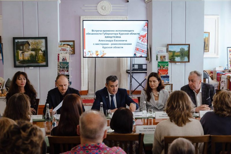Развитие и поддержку традиционных ремёсел врио губернатора обсудил с курянами, которые занимаются народными промыслами. Он отметил, что до сегодняшнего дня сохранилось порядка 10 уникальных художественных ремёсел, которые мало известны из-за отсутствия должной работы по продвижению. Вместе с тем в преддверии тысячелетия Курска создание сувенирных точек приобретает особую актуальность.