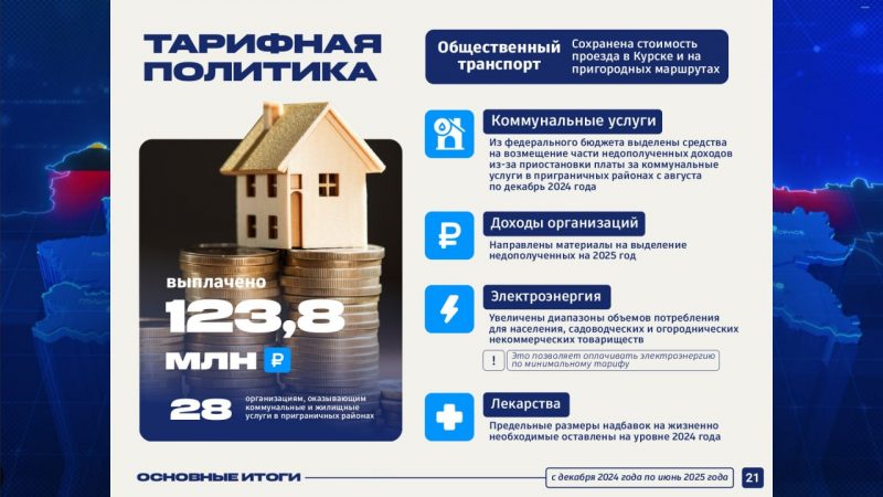 Организациям, оказывающим коммунальные и жилищные услуги в курском приграничье, с декабря 2024 по июнь 2025 года выплатили 123,8 миллиона рублей.