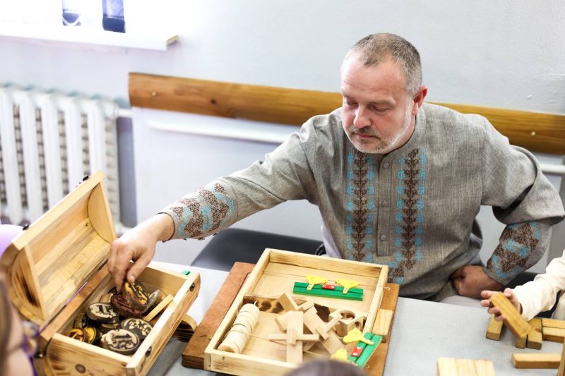 — Я обучаю бондарному делу. Ребята могут сделать деревянные игрушки и монеты. Они и выпиливают лобзиком, и выжигают. Многие участвуют в конкурсах и получают призовые места, – поделился Дмитрий Непанов, мастер Центра народного творчества «Русь».