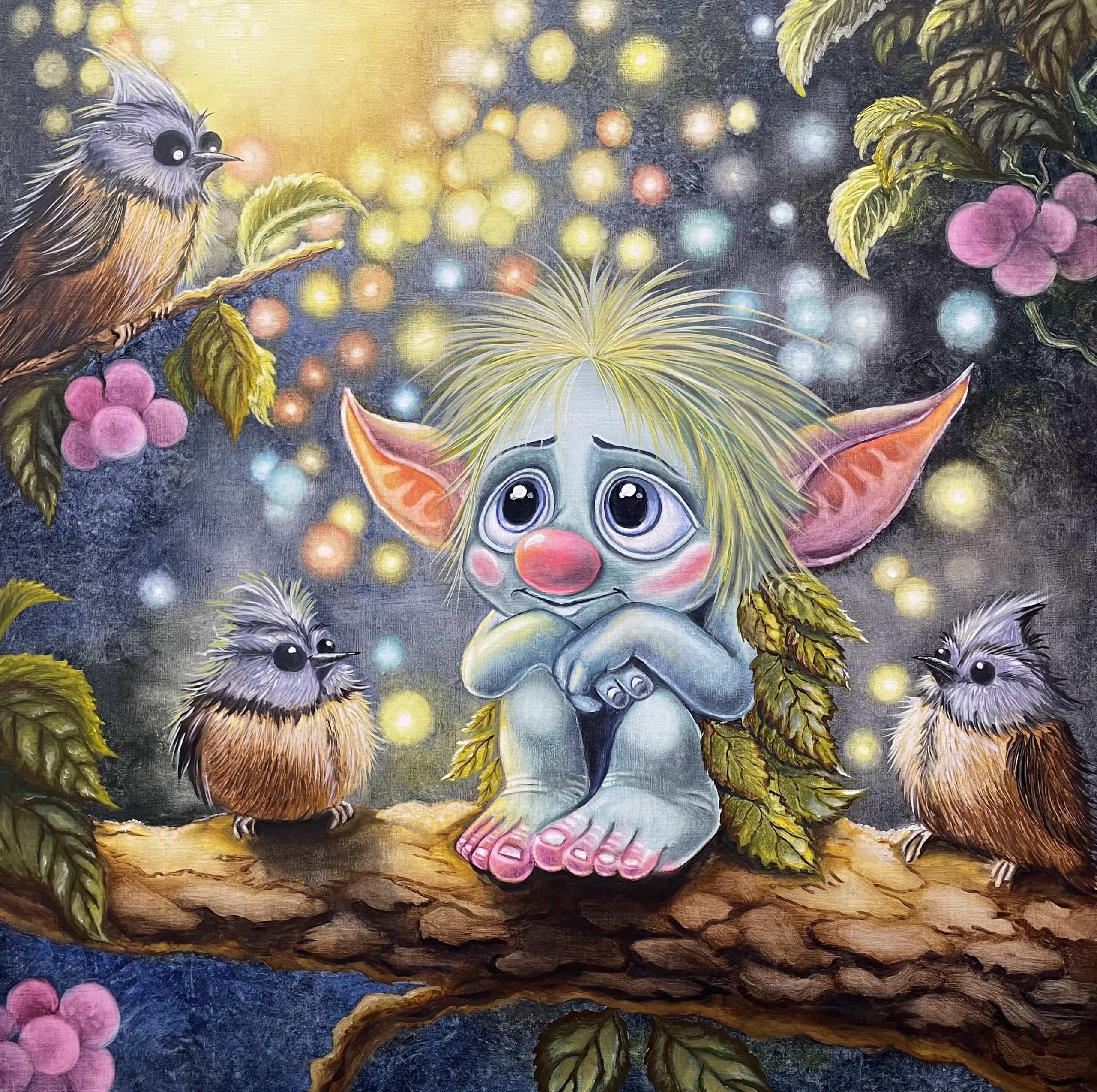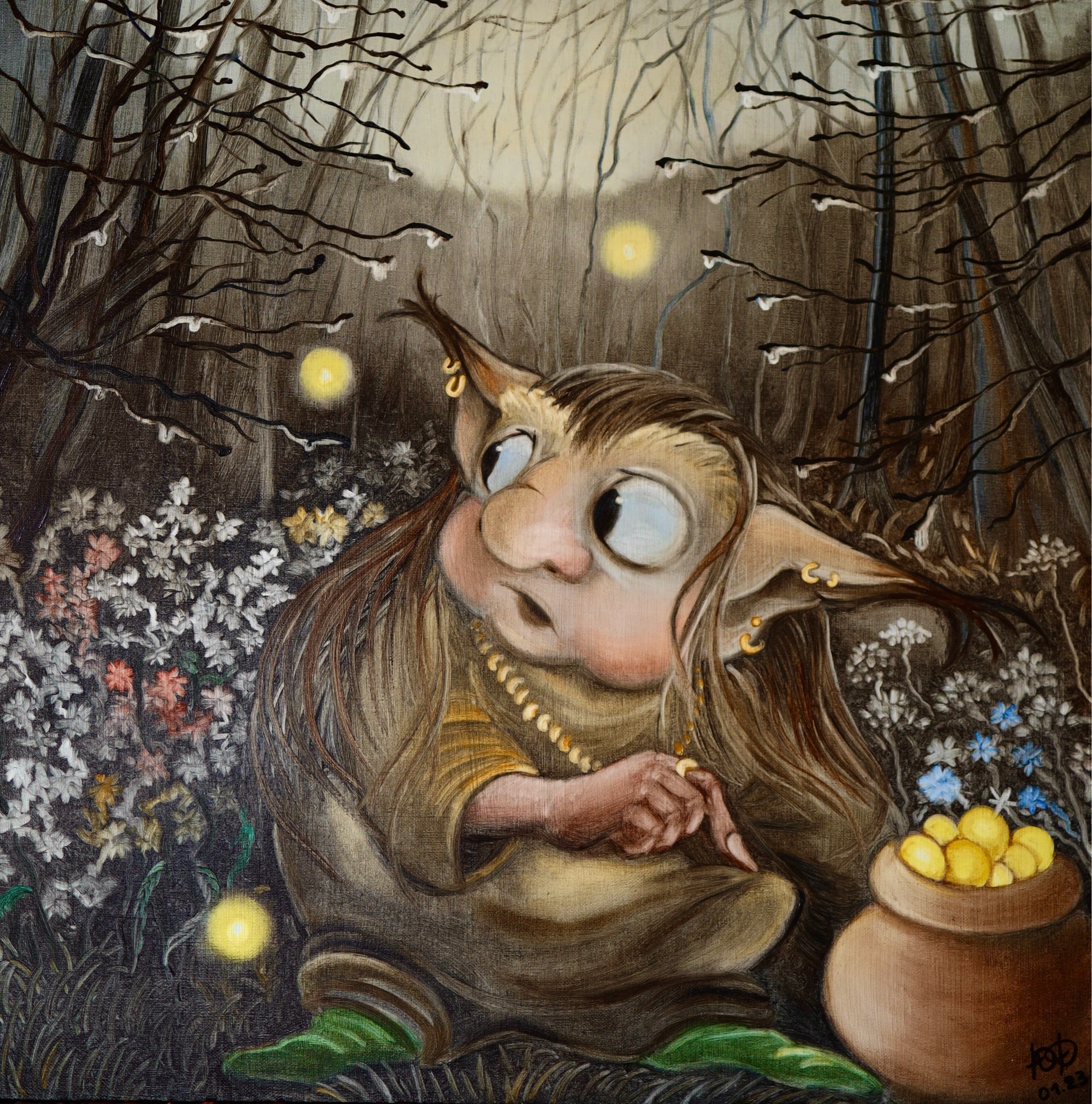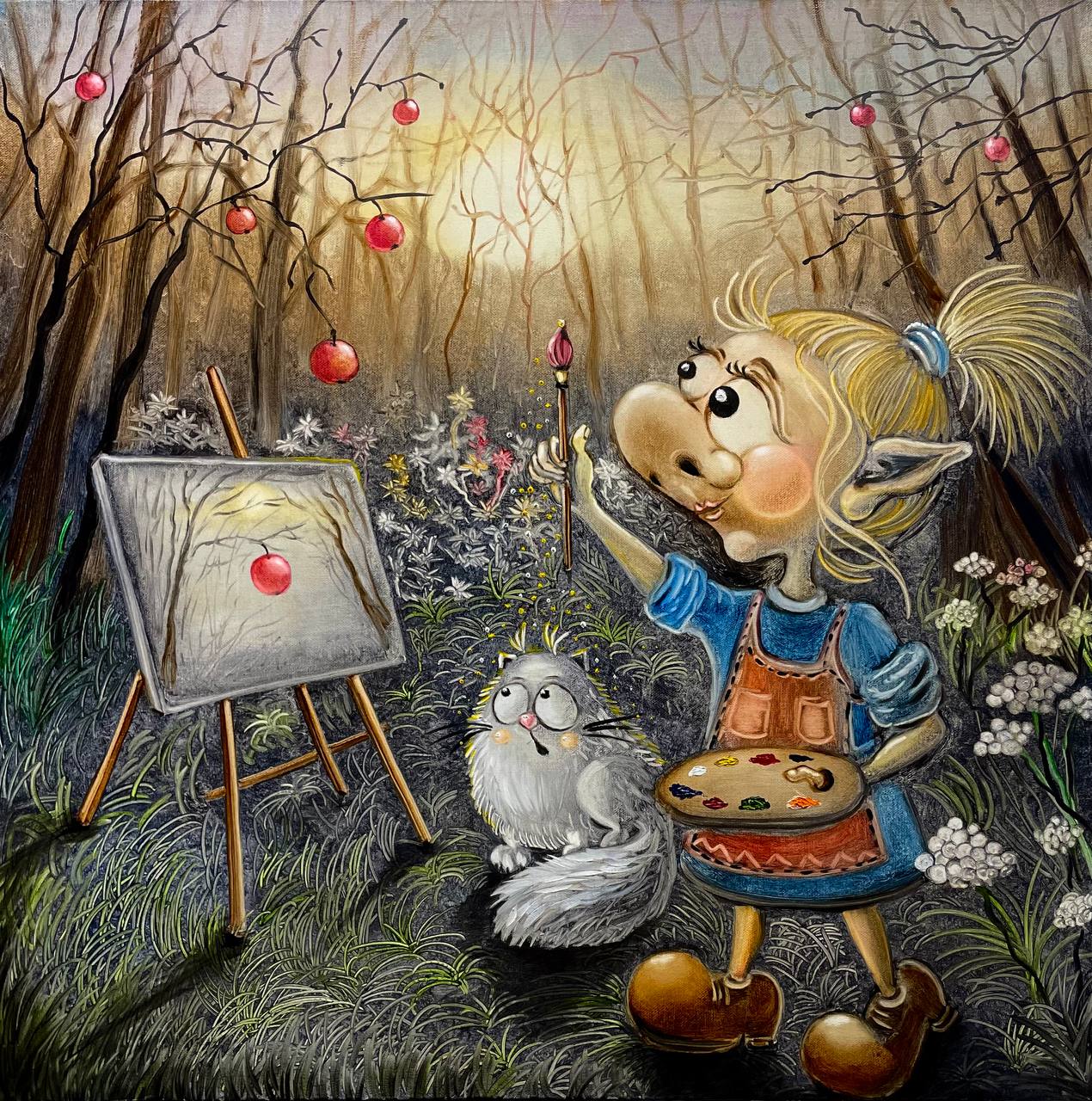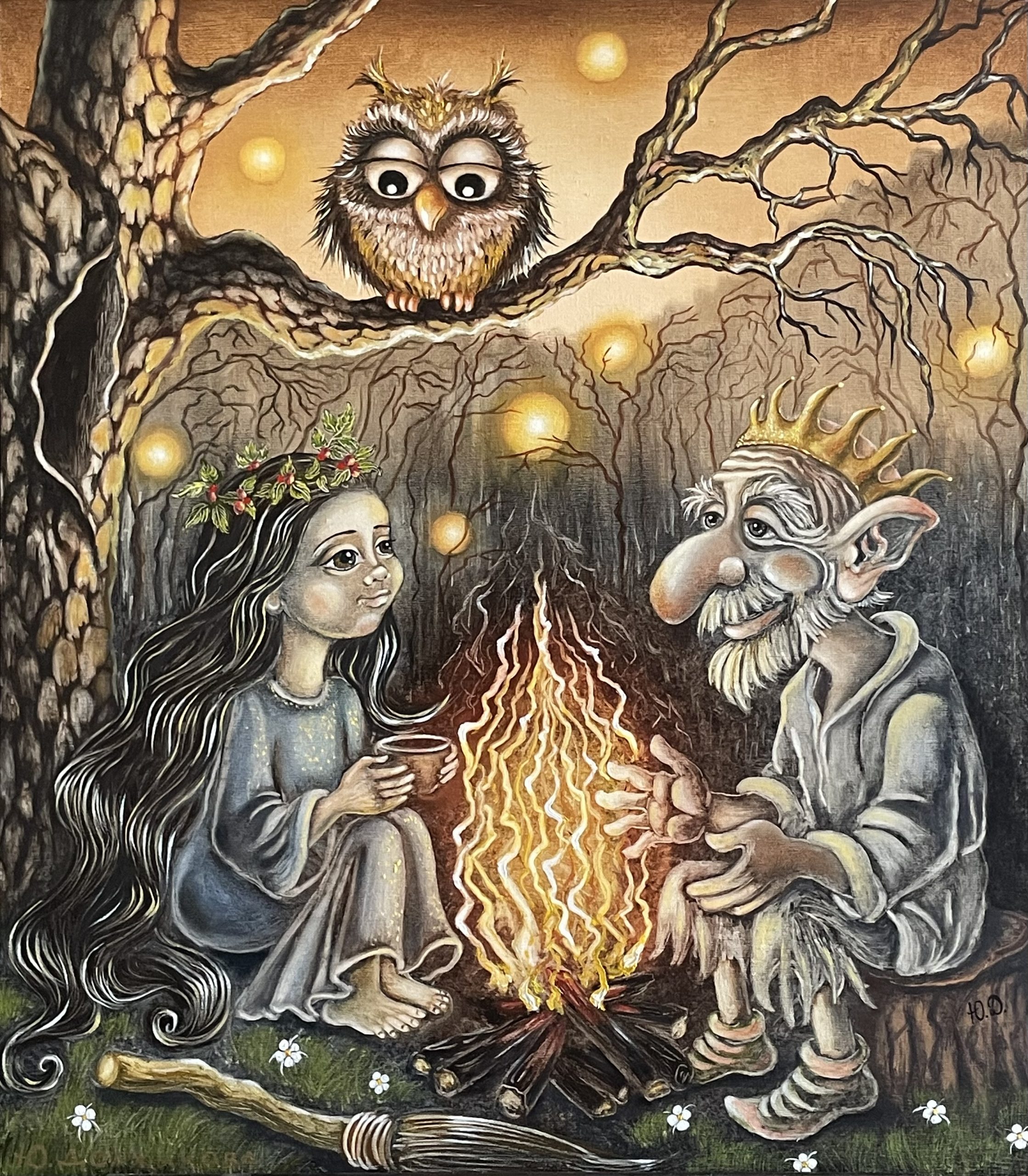 А тролль на одной из картин, трясущийся с лесу над своими сокровищами, – собирательный образ человеческих пороков. Правда, персонаж этот, как и все персонажи Юлии Должиковой, тоже не лишён обаяния, а Баба Яга и Кощей на другом полотне и вовсе очаровательные, молодые и совсем не злые.