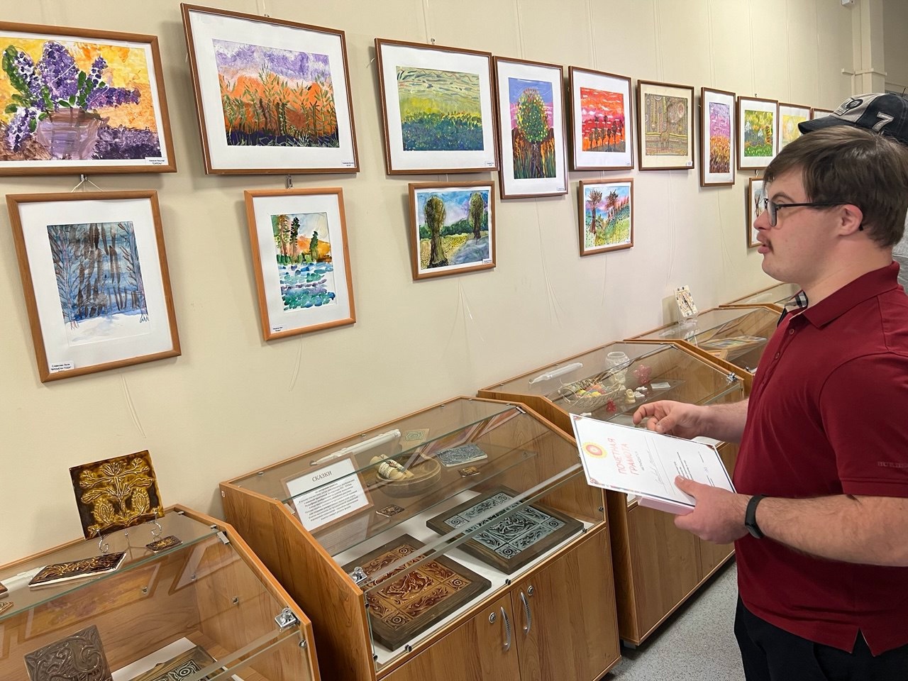 В Курской библиотеке имени Асеева открылась выставка участников инклюзивного центра.