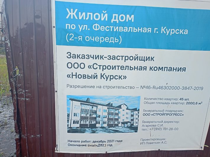 Строительство дома на 45 квартир начали в декабре 2021 года, и должны были завершиться к декабрю 2023 года. С 2018 года возглавляющий компанию «Новый Курск» Алексей Латышко не устает обещать заплатившим деньги людям, что они вот-вот смогут отметить новоселье, но веры его словам нет.