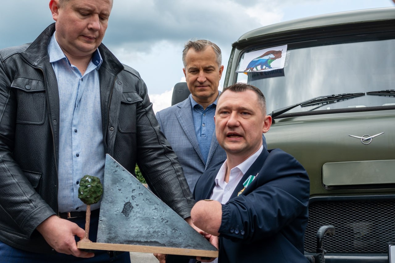 После передачи ключей от УАЗов куряне внесли свой вклад в строительство народного памятника «Живая память благодарных поколений». Монумент в форме солдатского фронтового письма и дерева, олицетворяющего мирную жизнь, которую подарили потомкам воины, победившие фашизм. Памятник задумывался благотворительным фондом Алексея Талая как символ единства России, Беларуси и стран СНГ. Его привезли из Минска и установили в Москве на Поклонной горе к 80-летию Великой Победы. А в регионах сейчас идёт сбор монет, которые затем соединят в единый сплав и добавят внутрь памятника, подчеркнув тем самым его главную идею – единство поколений, героев и историю подвига. В капсулу, которая представляет собой миниатюрную копию памятника, монеты с изображением Курска положили представители региональной власти и журналисты.