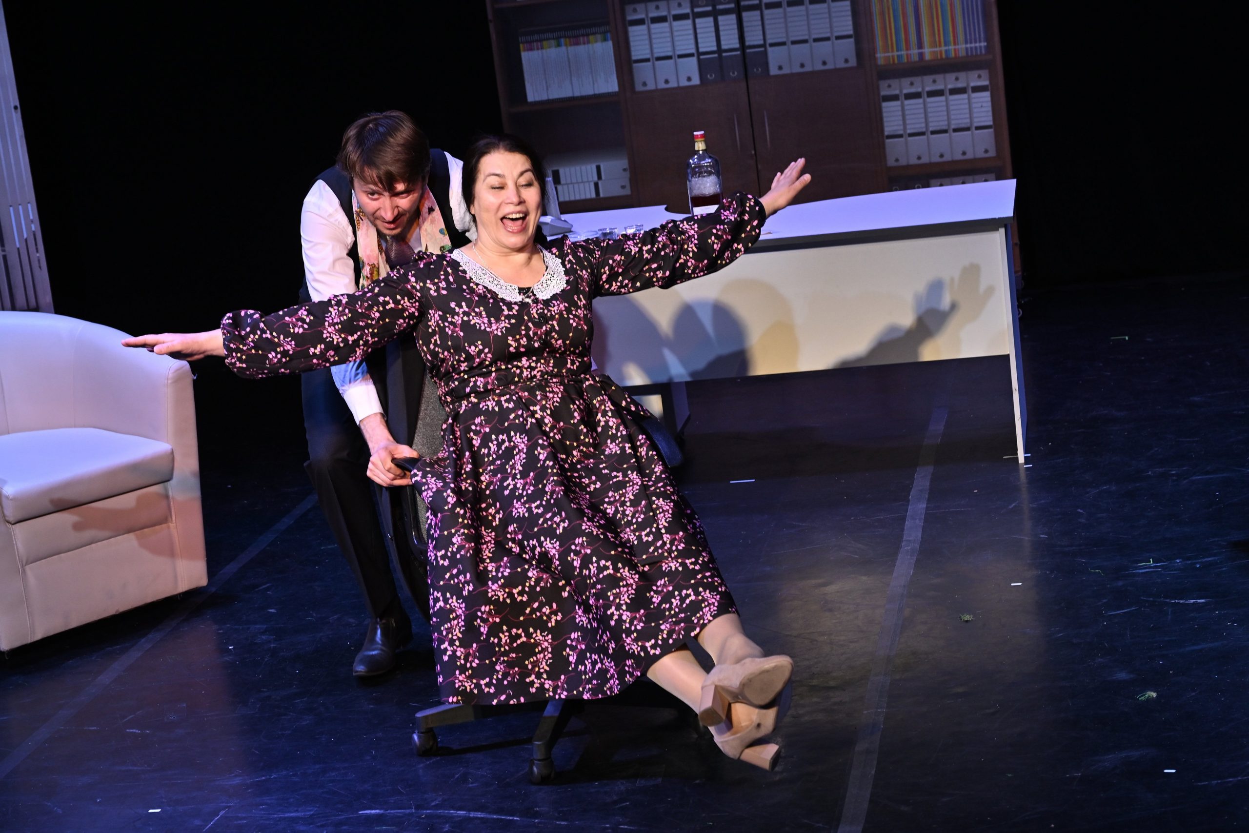 На малой сцене прошла генеральная репетиция его новой режиссёрской работы – спектакля «Ненормальная» по пьесе Надежды Птушкиной. Пьеса была написана в 1992 году, но остаётся актуальной и сегодня. «Ненормальная» – это история о большой любви, о людях, которые не могут быть вместе. У героев нет имён, и каждый зритель может увидеть в них себя.
