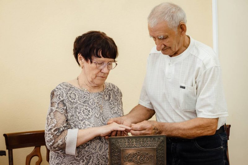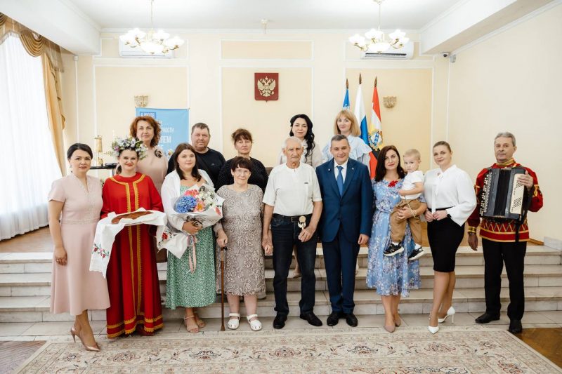 На торжественной церемонии по случаю изумрудной свадьбы супруги вновь зажгли семейный очаг (от частички пламени из Свято-Троицкого монастыря в Муроме — благословенной Родины покровителей семьи и брака святых Петра и Февронии), обменялись обручальными кольцами и скрепили свой союз подписями — в книге почётных юбиляров.